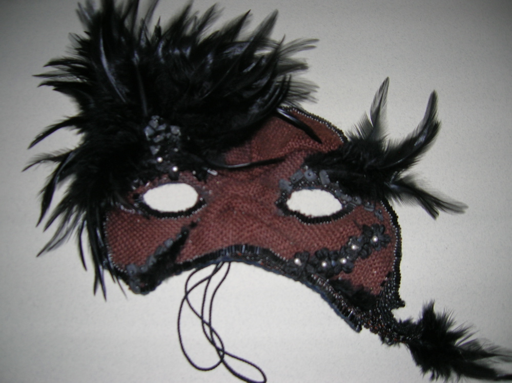 This is the second mask I ever made from scratch, not counting paper plates. It’s super old and hard to see out of and a little itchy and still might be my favorite. Also, the glitter effect was created by rubbing glitter makeup into the felt, and I am not yet ready to admit how old I was and that I still owned glitter makeup, although in my defense, I think I bought it for Halloween. Or possibly a Tuesday.