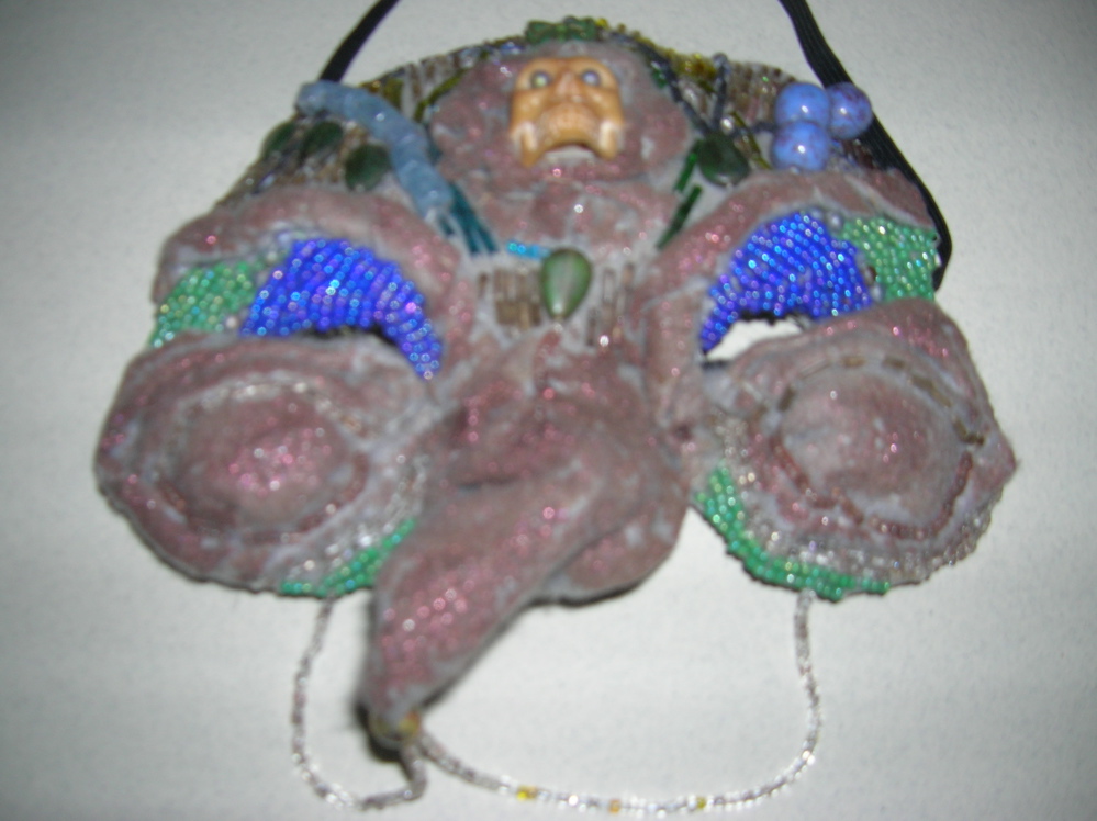 These are nearly all stiffened felt with bead embroidery and assorted stuff, except for the gold goblin, which is papier mache and pokey, pokey sticks. I don’t advise wearing that one if you want to stand next to anyone without them losing an eye.
