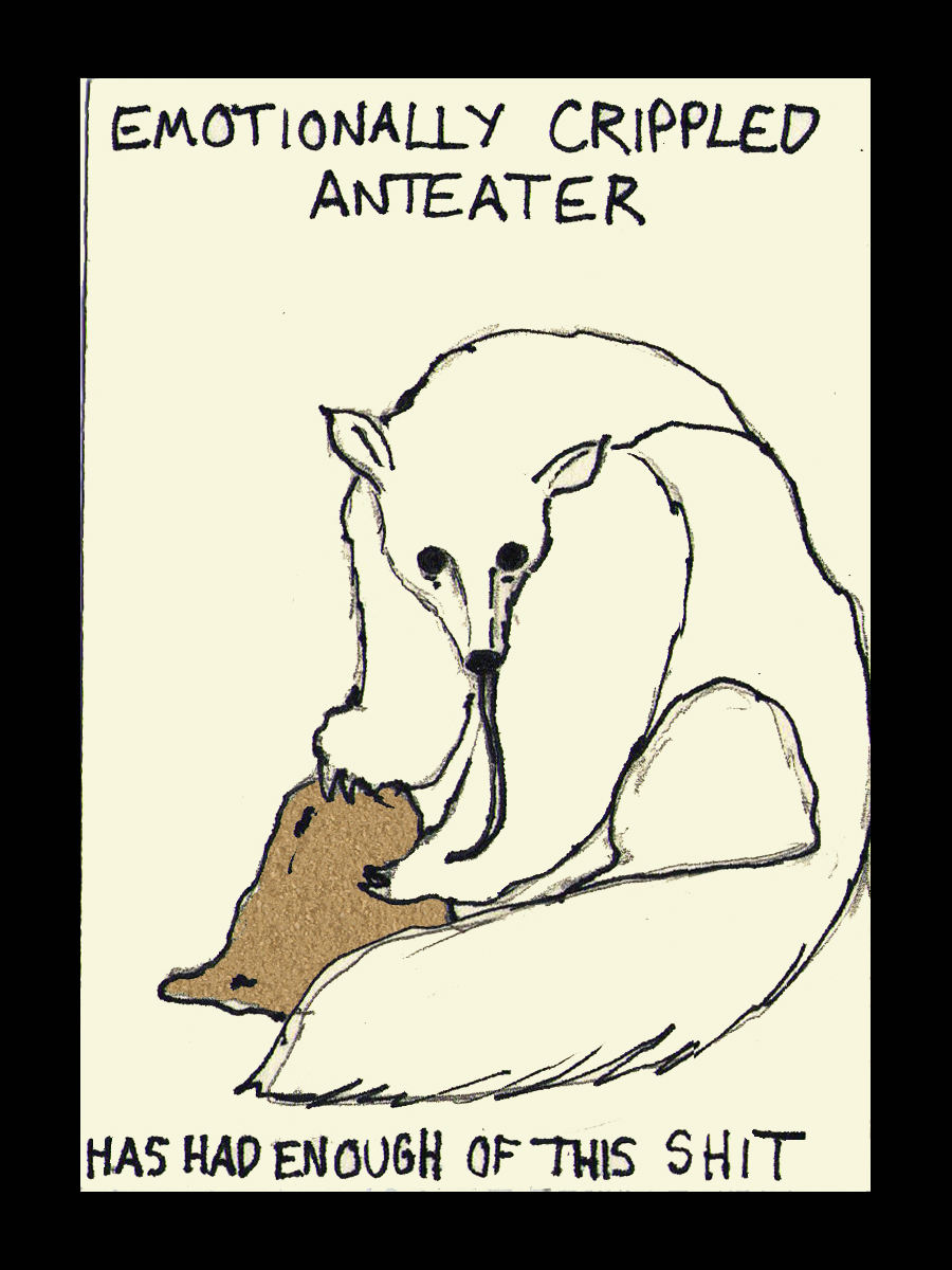 This was something of a special request this weekend. If I recall correctly, (and I probably don’t) he was originally Impotent Rage Anteater, but I can only draw what feels right to me:
