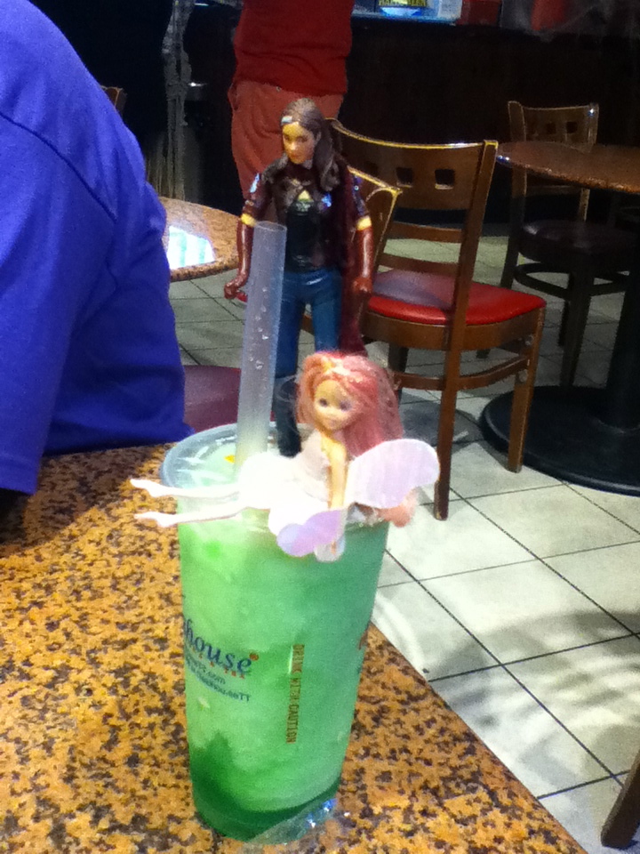 6. Tiny Rogue loves bubble tea green apple slushies almost as much as I do.  So does her weird faery friend.