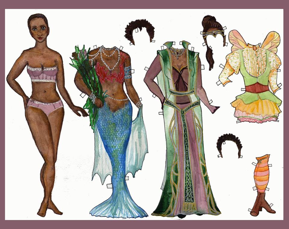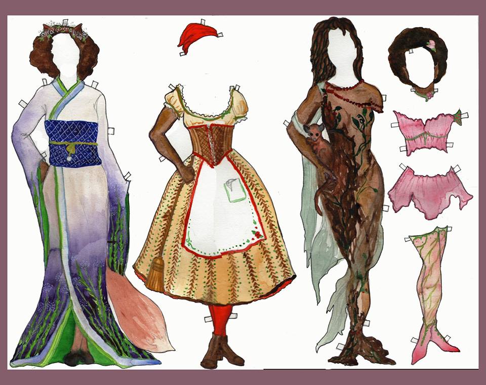 I’ve finally finished and uploaded my first truly new paper doll set in a while. For sale here, as usual; also here, because she’s two pages.