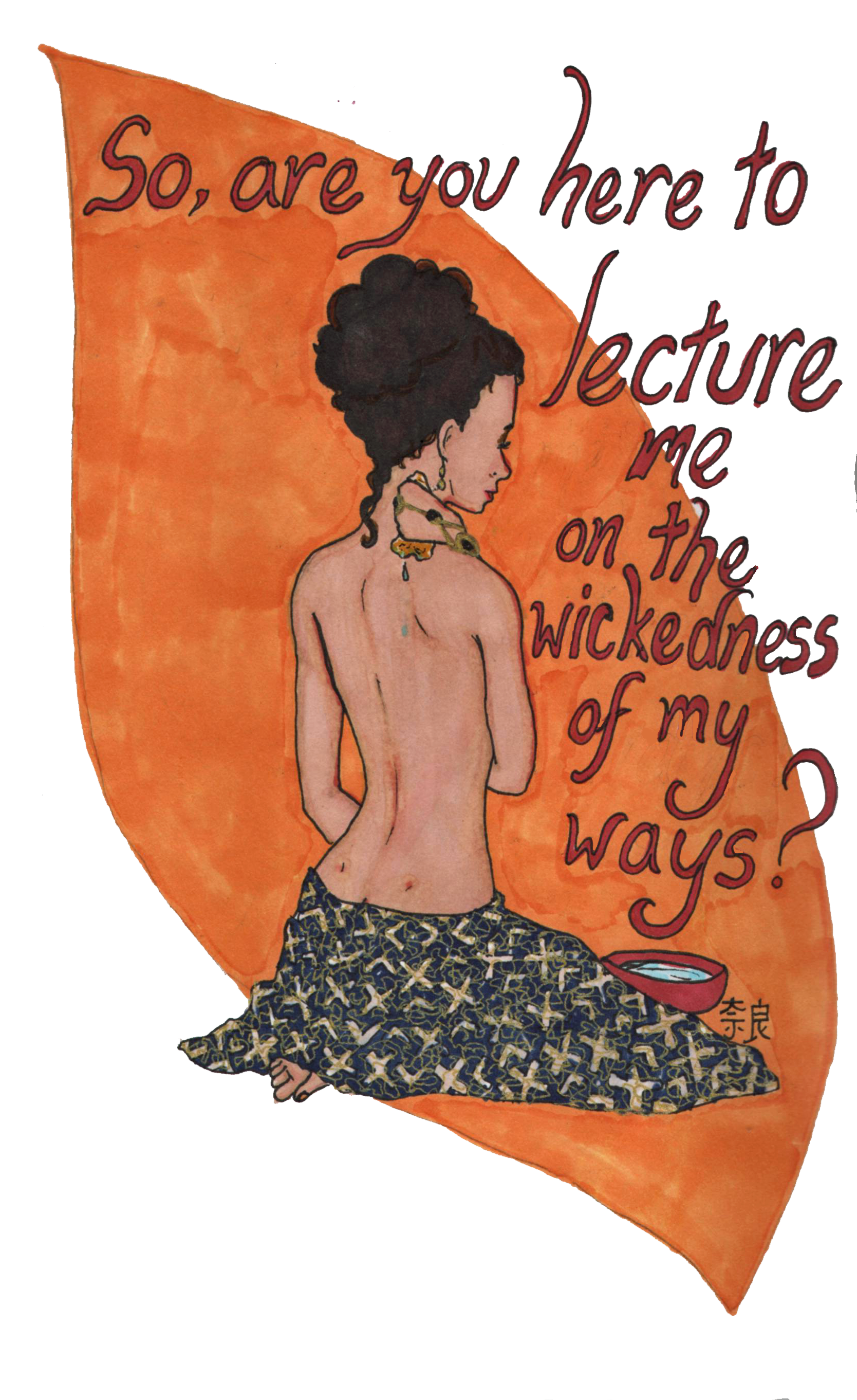 This one’s been sitting in my sketchbook waiting to be finished for ages, because it was really hard to decide what colour that fabric is. If you don’t think it’s screen-accurate, write to me at shhhhhh. Shhh.