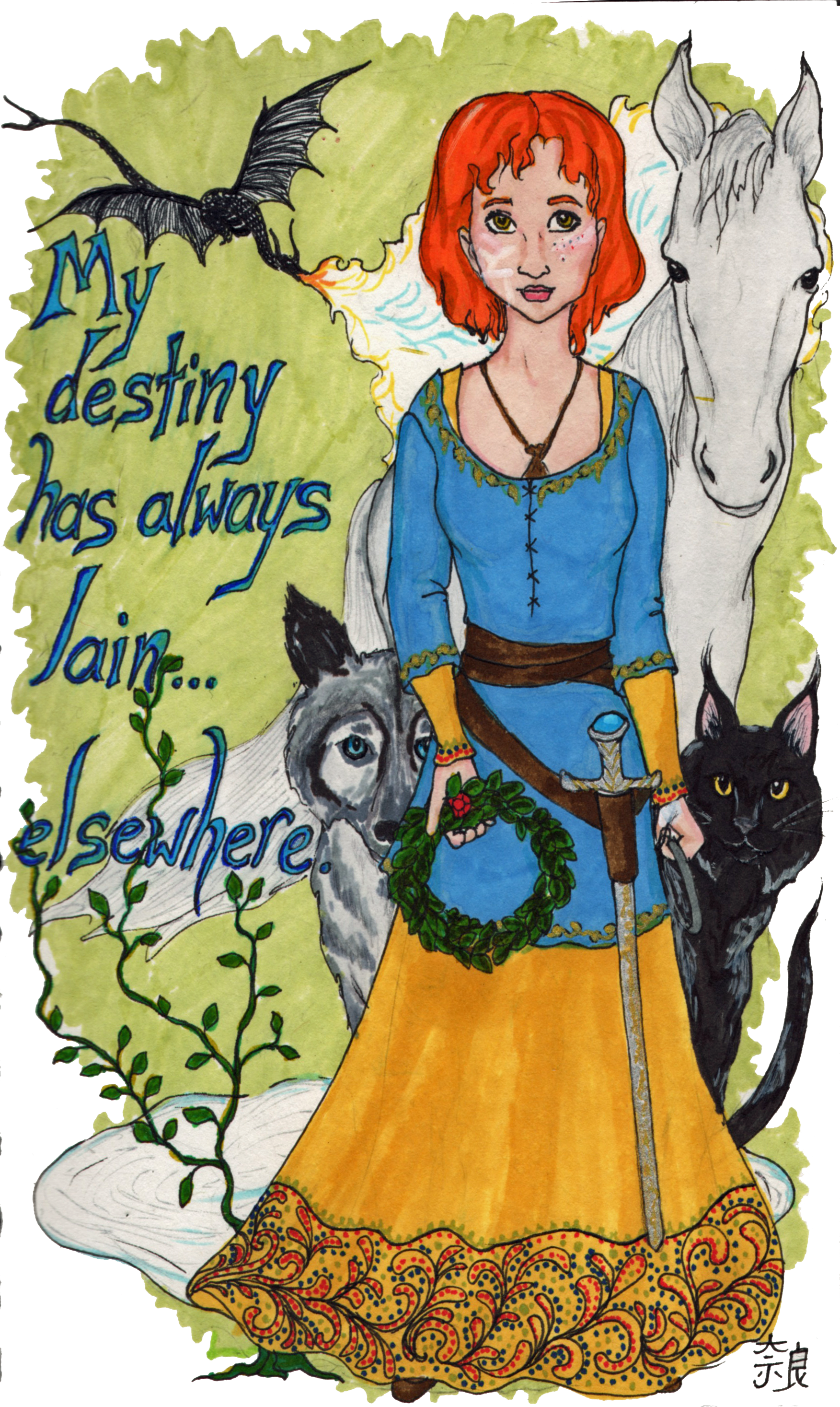 I think one of the things I especially love about Aerin is that, when she realizes (spoiler) she’s in love with two different men, she doesn’t agonize over it. She just decides to spend the rest of Tor’s life with him, then take her still not quite human self off to Luthe, who’s proven that he’s good at waiting. It’s a subtle way of saying that you don’t only get one chance at love in life, and I like that.