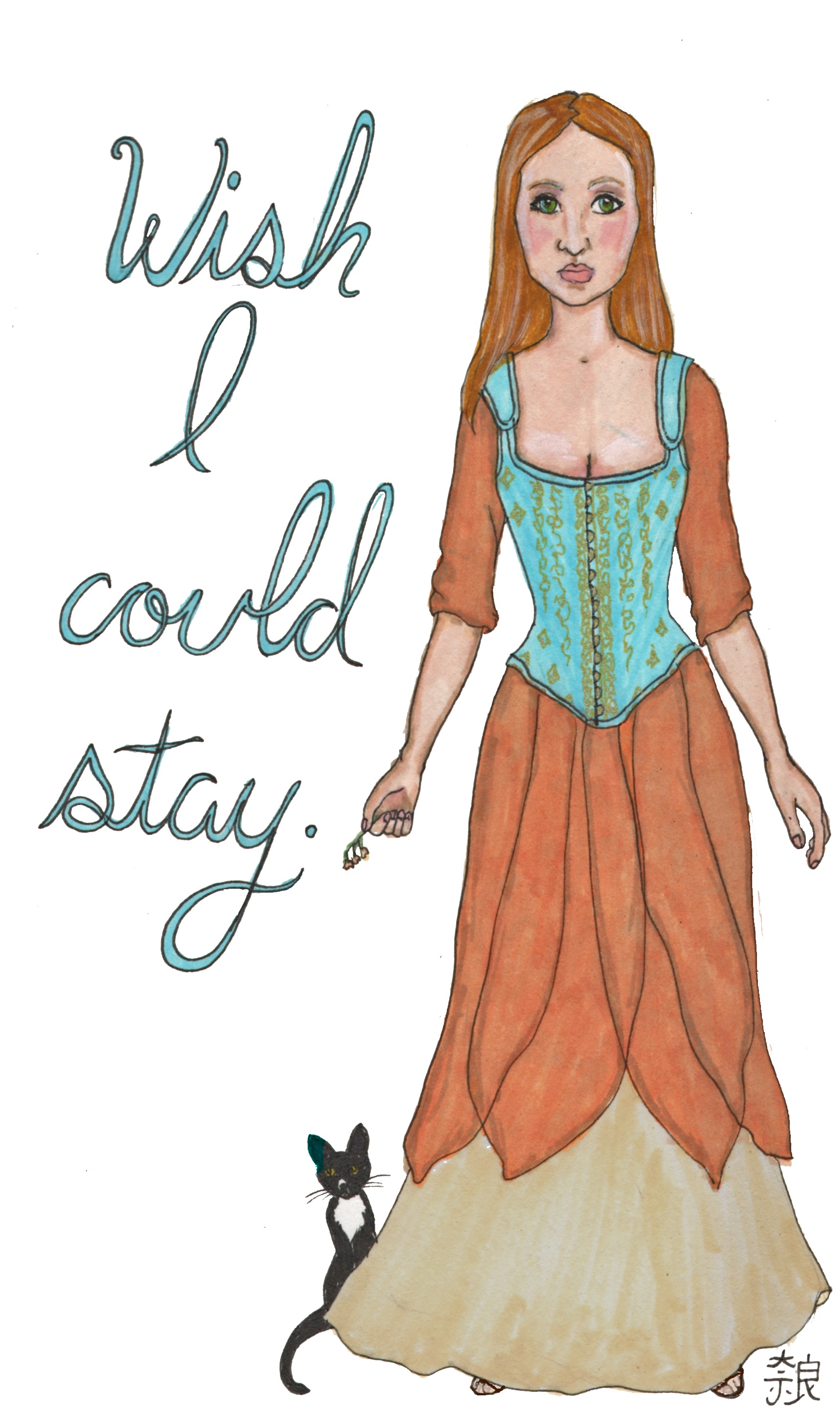 So I know this isn’t the outfit she wore during the song, but they so frequently made Tara super frumpy that I really wanted her to have her flattering (if inexplicably Renfaire-y) clothes for this moment. The quote works on both levels for me; the big, brave, sad decision she makes in ‘Once More with Feeling’, but also Tara’s eventual fate. Maximum sads! I THRIVE ON YOUR TEARS, apparently.