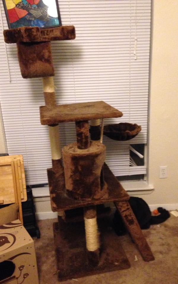 • K came over to hang out Wednesday night and also to bring Mooch the amazing fantabulous cat tree that her snooty bitches never, ever used.  In exchange, she took home the puzzle feeder and fishy bed that my snooty bitches never used.  They get away with it because they’re cute and also because LOOK AT THE PURE JOY OF MY CAT AND A CLIMBING TOY.  Someone make me feel this kind of joy about literally anything, please?
