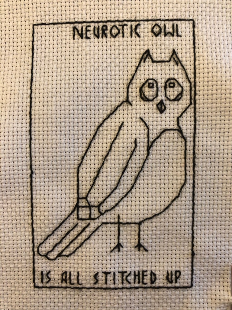 Does anyone want the chart so you can sew your own? I’m out of graph paper just now so I made him up as I went along but I’m happy to chart it up and upload it if anyone feels an overwhelming urge to embroider an owl. Not sure yet if I want to add any sort of decorative border or just get on with figuring out the other main characters.