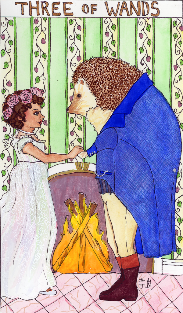 Wands, wands, wands. I went with Hans My Hedgehog for this card, which some of you may actually know from Jim Henson’s Storyteller for a change! But basically it’s a Beauty and the Beast variant – Hans is top half hedgehog, bottom half man, so like the Cat’s ideal mermaid from Red Dwarf but, y’know, pointy and fuzzy.