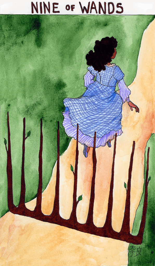 There are multiple stories where this turns up – it’s something of a trope in Russian fairytales – but let’s go with Baba Yaga. A young girl is sent to her aunt to borrow a needle and thread by her wicked stepmother, but she knows the aunt is a Baba Yaga and gets some advice from her dead mother’s sister before she goes and knows to bribe the cat with bacon, along with several other tasks and tricks. The cat gives her a towel and a comb, and when she runs away she first throws the towel on the ground, where it becomes a wide river that slows the Baba’s pursuit. Then, when she’s close to being caught again, she tosses down the comb, which becomes an impenetrable forest that the Baba can’t cross. Then she makes her way home, and once her father hears the whole story he shoots her stepmother and they live happily ever after. . . I guess?