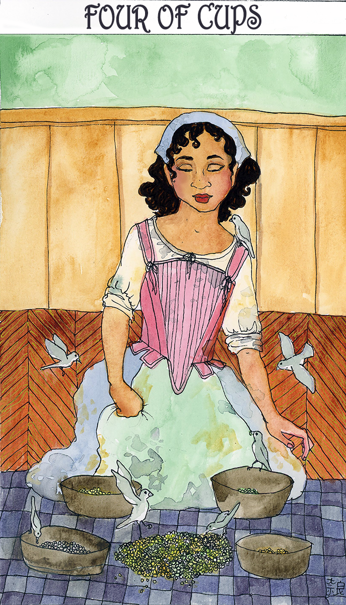 I totally knew this one was going to be a cups card, though I wasn’t sure which till I hit four and the general meaning seemed about right.