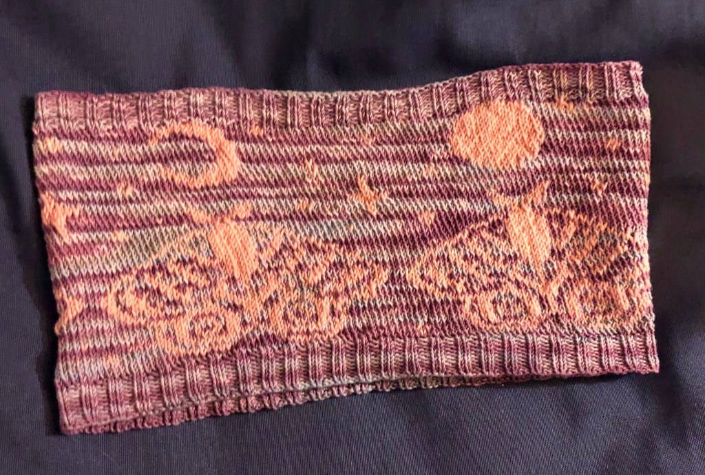 The pattern is Saturniid Cowl by Lucia Blackstone, the primary yarn is a fucking mystery because my mon brought it back from Israel for me a few years ago with no label whatsoever, and it’s my first time doing colorwork, yayyyy!