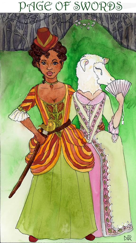 Also any chance to draw a woman in a rococo gown with a sheep’s head, amiright? Although I admit while Katie is an engaging and delightful and active heroine, poor Anne is entirely flat AND damseled.