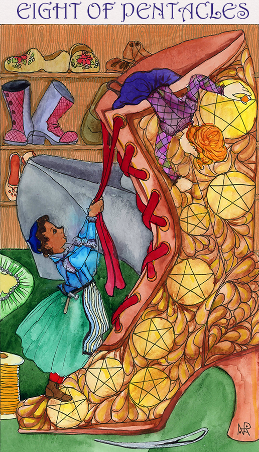 Anyhoodles, the elves and the shoemaker! Seemed right for a card about mastery of a skill, and I love the inside-outness of Faerie rules where if you thank them they’re gone.