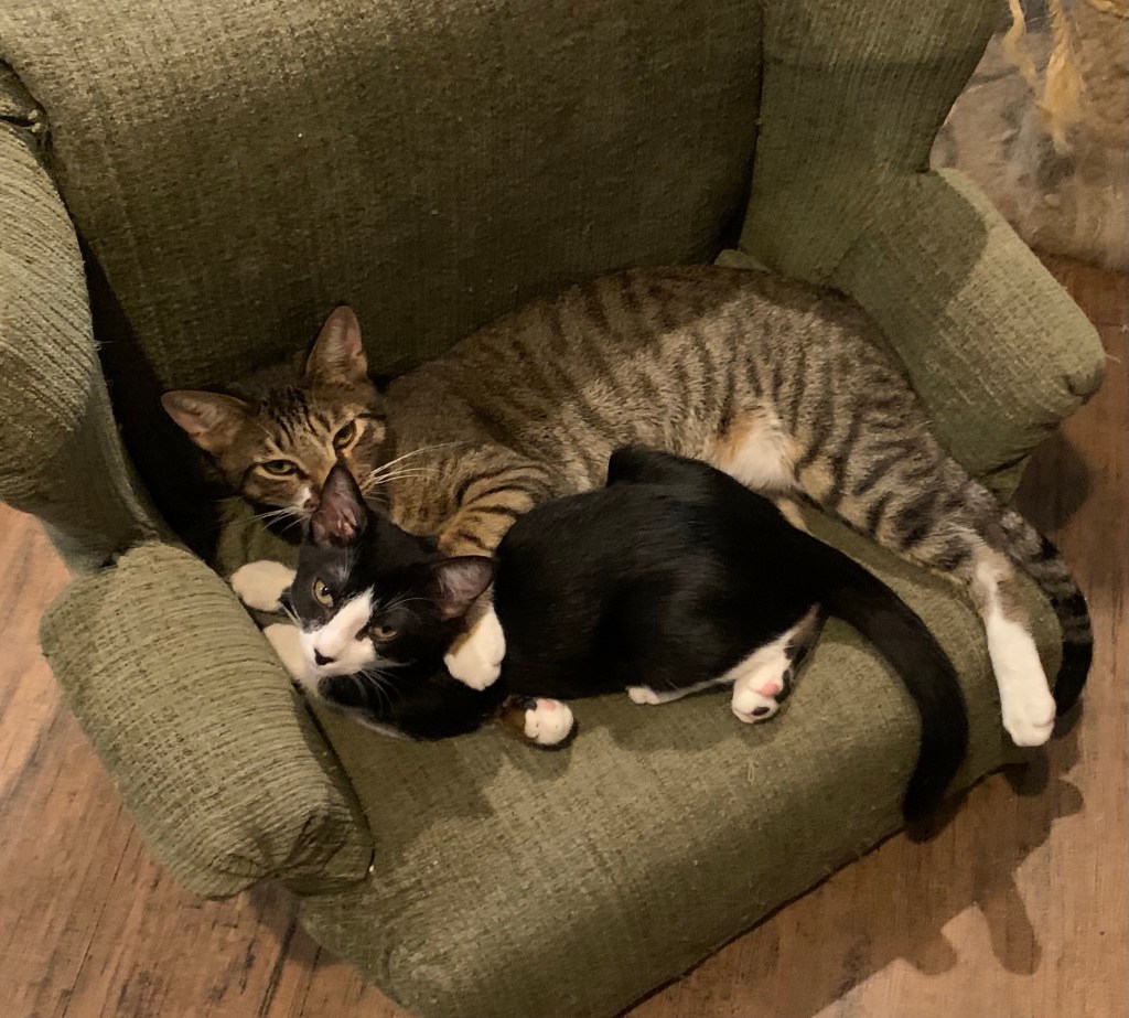 Still a rough week and unlikely to get better soon, but I did get to hang out with my parents’ kittens again and that’s literally always a good thing.
