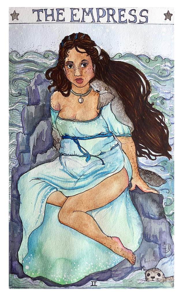I need to pick two pieces of art in addition to La Llorona to submit to the upcoming Texas Women’s Caucus for the Arts show, which is a tribute to water and will be hosted at the Mexican cultural center in San Antonio. Ok, I don’t NEED to, but I have tons of watery artwork, why not submit the max? Also as I think you know by now La Llorona is going to be EXPENSIVE – I’m looking at about $3600. So if more than one piece gets juried it it wouldn’t suck to have something more affordable in the show; the Anne of Green Gables embroidery is $1575, and the tarot card paintings are $150 each.