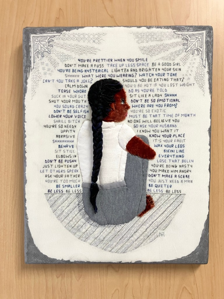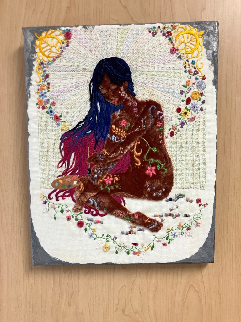 Anyway, I did finally get good pictures of the two related embroideries, PLUS a very amateur video of one of them. Leave your sound off, there’s nothing to hear but background noise.